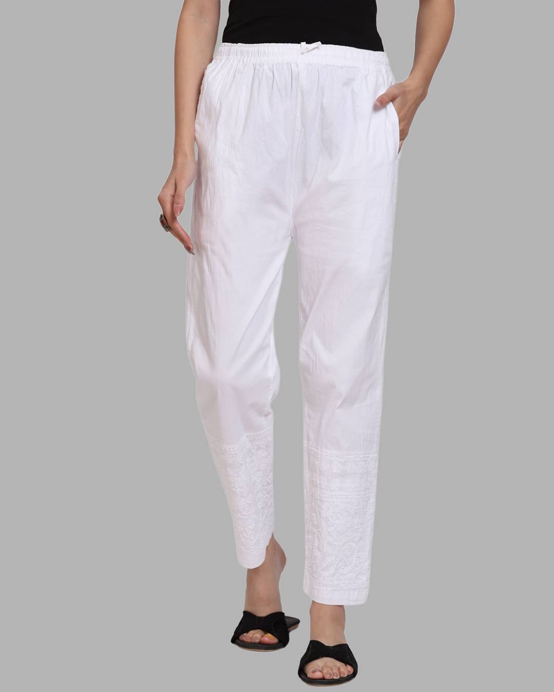 Kuku Chikankari Stretchable Cotton Lycra Pants with Both Side Pockets