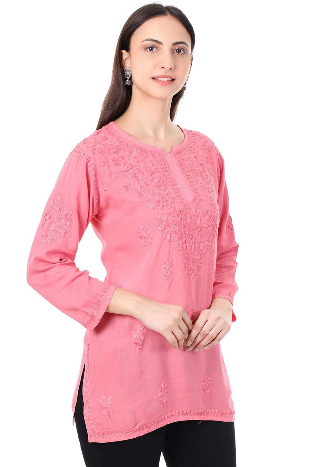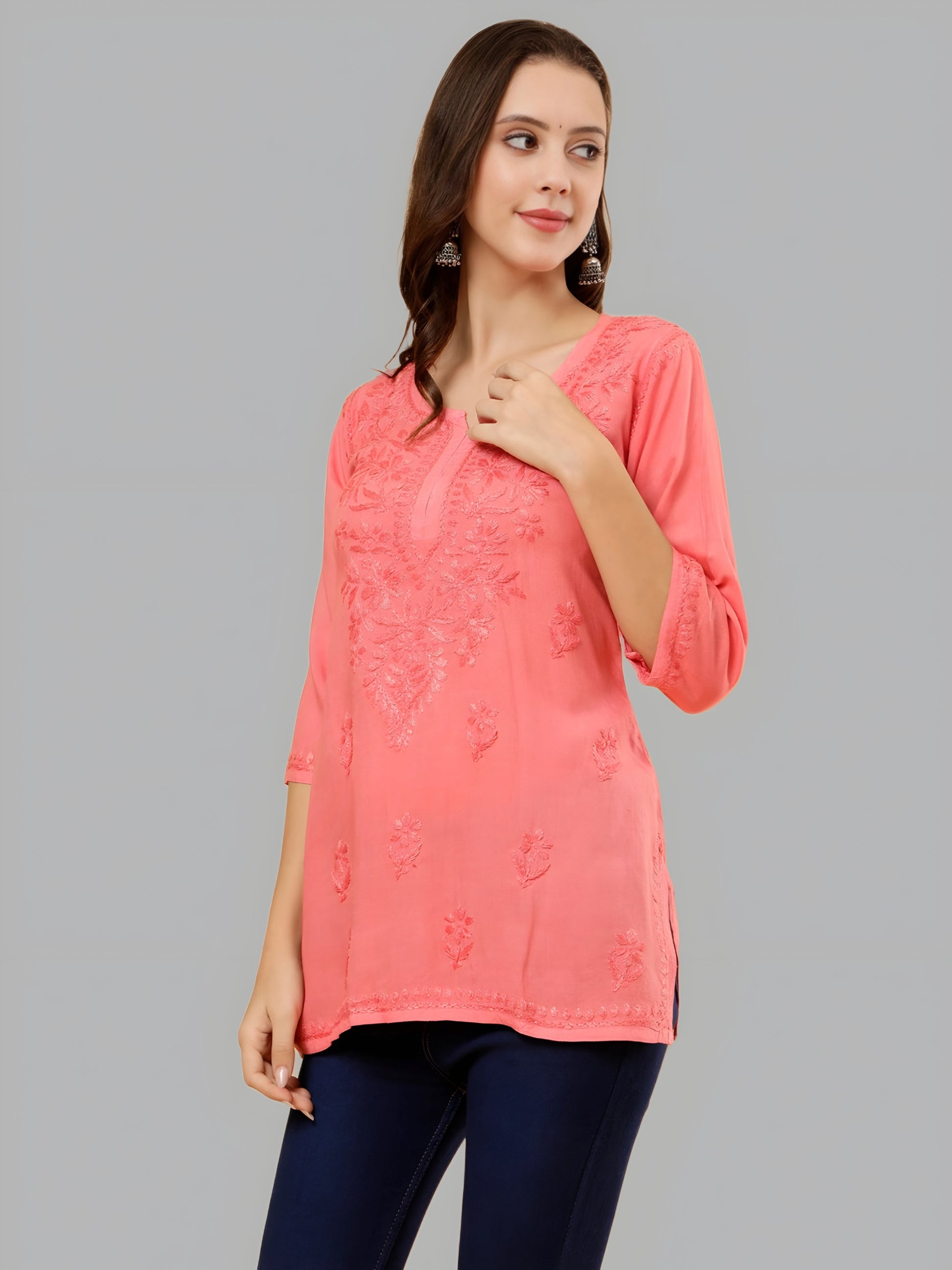 Experience effortless elegance with our Dyed Short Rayon Chikankari Kurti, designed for the modern woman who embraces timeless tradition. Crafted from premium rayon fabric and hand-embroidered with authentic Lucknowi Chikankari, this 28-inch kurti brings together comfort, sophistication, and heritage in a perfect blend.